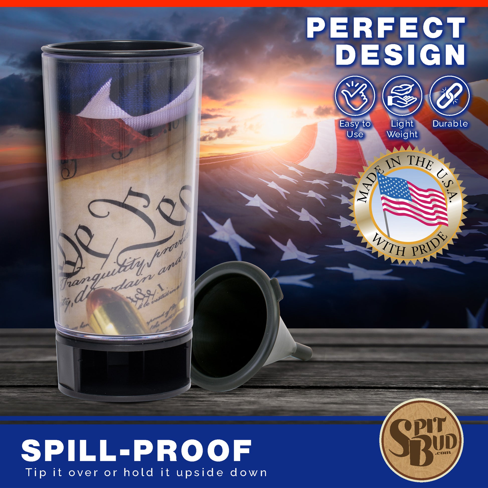 Know someone who is an avid chewer? Then make their day with the Bullets and Preamble Spit Bud. Each spit cup is packed inside a box, ready to give away and impress. Furthermore, every Spit Bud is a proudly American product. It's made in the USA by skilled American citizens. Upgrade your dipping sessions and support a local, homegrown brand with every purchase.