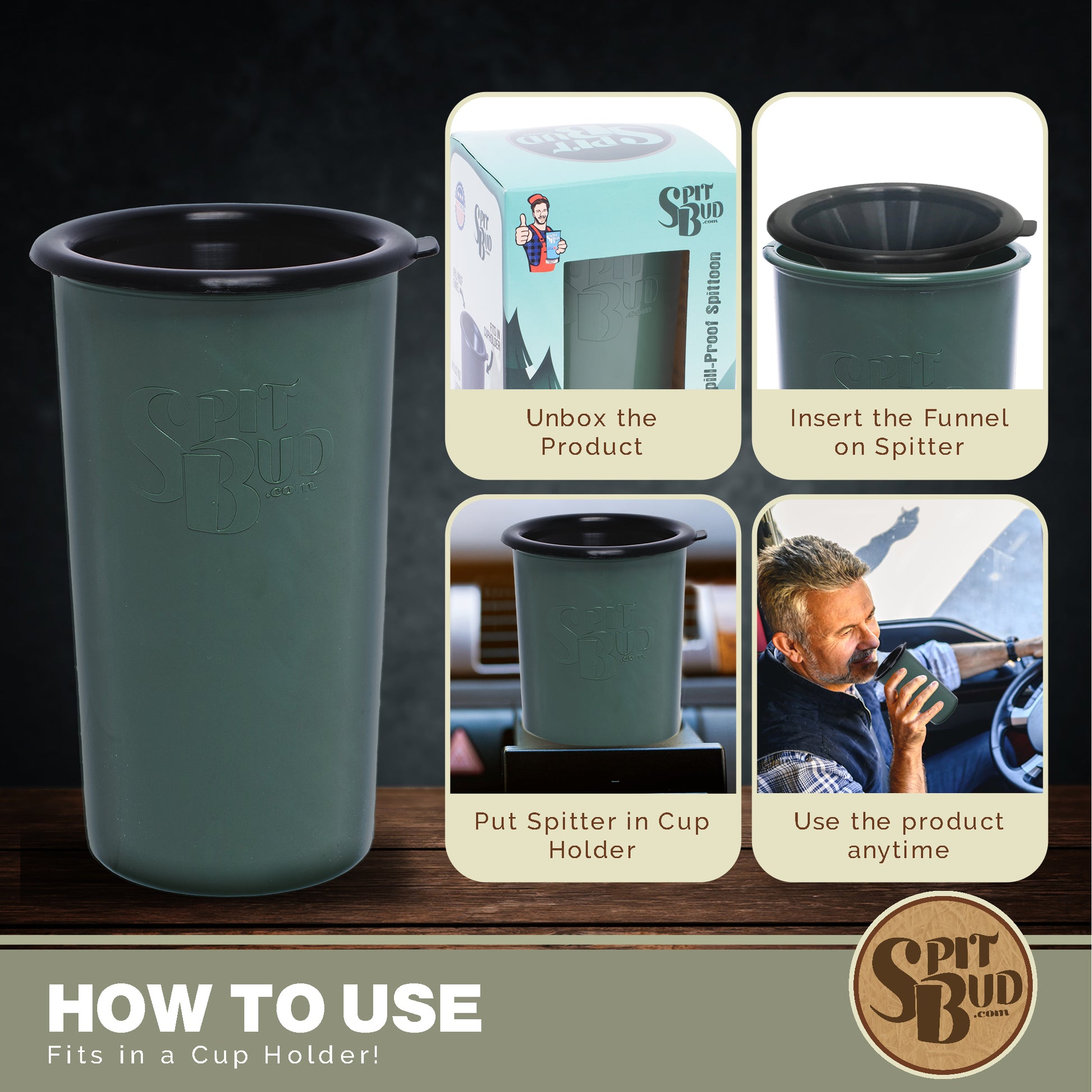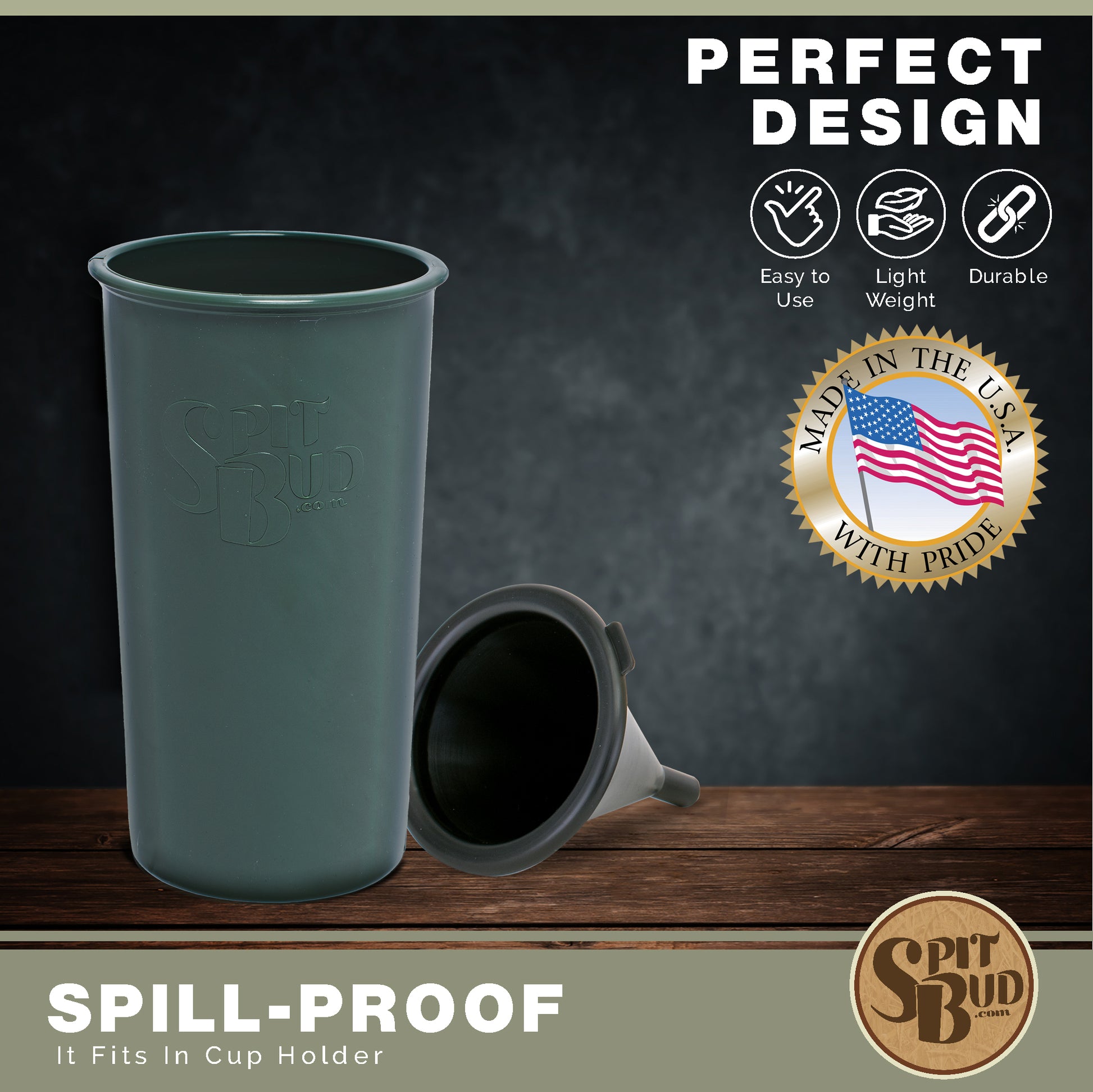 - All Spit, No Spills - Say goodbye to the yuck in the truck. Our spit cup is designed with a spill-proof funnel that helps hold liquid inside if you accidentally bump it while you're moving around